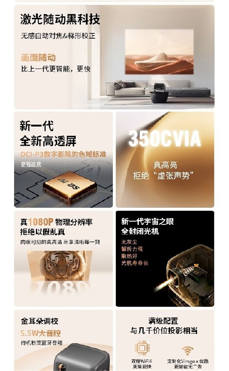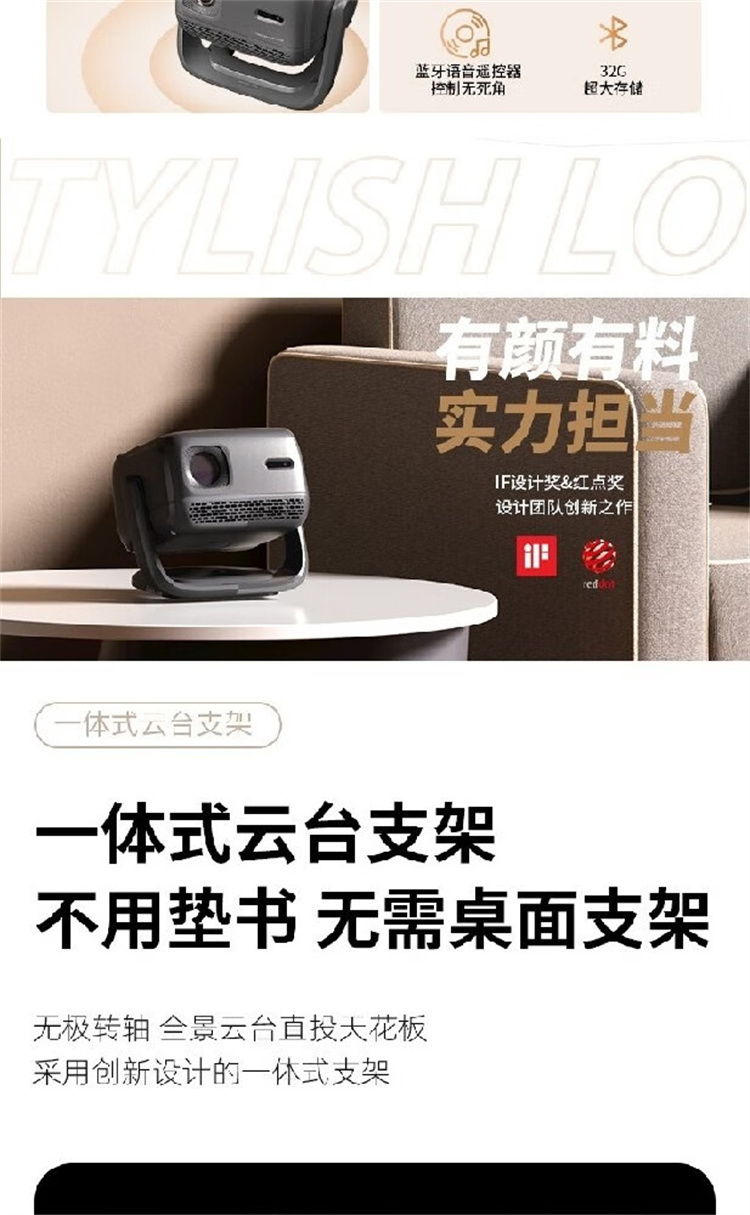 微果(VIMGO)超高清云台家用投影仪V7 Pro