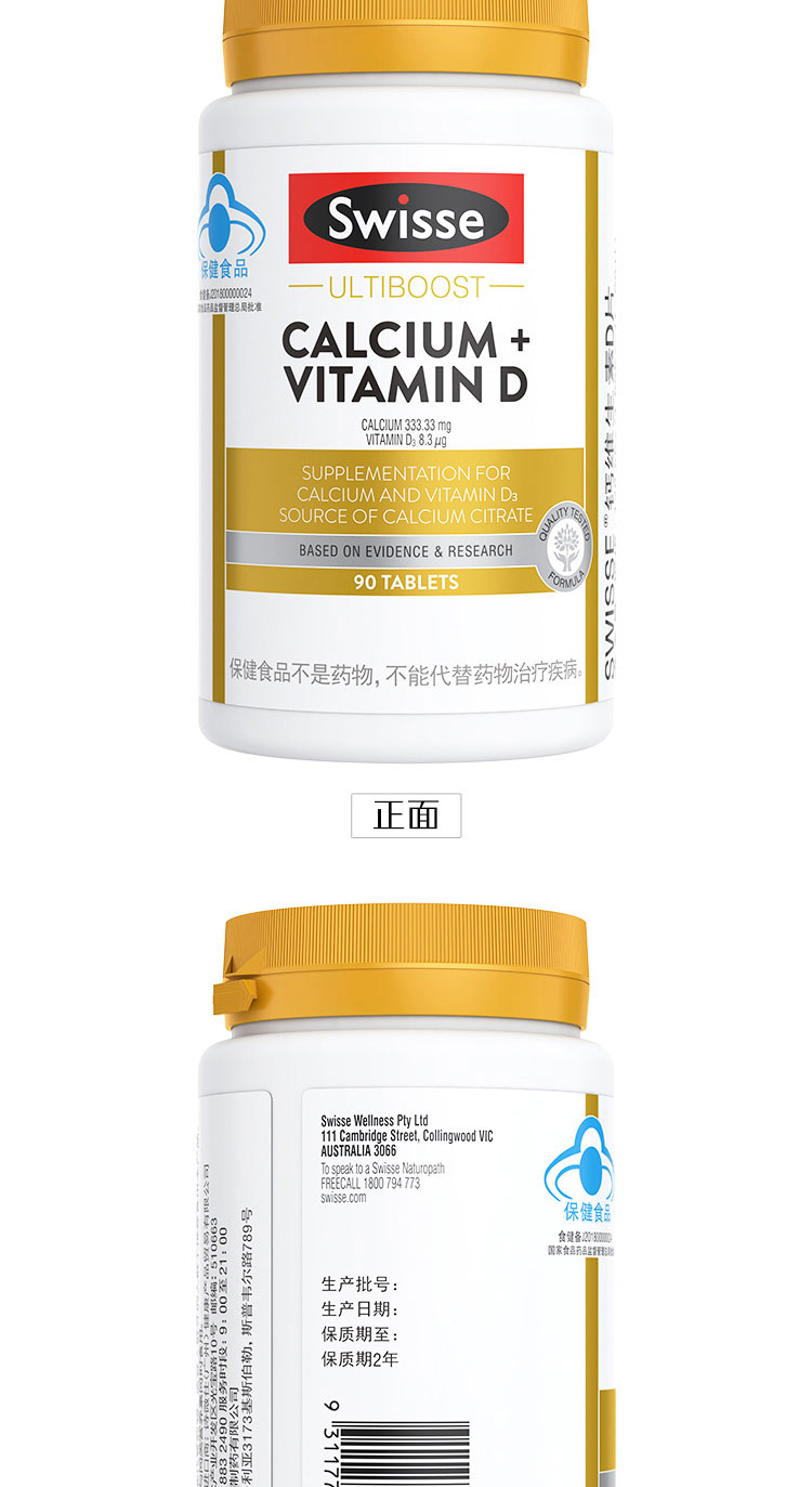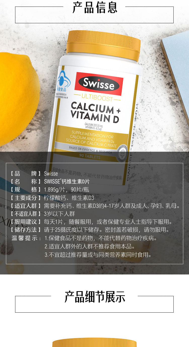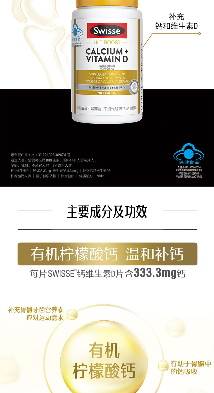 Swisse斯维诗成人钙片维生素D片90粒(进口)