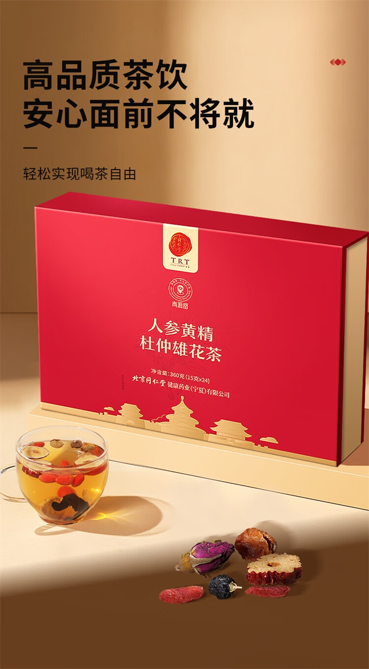 北京同仁堂青源堂人参黄精杜仲雄花茶360克(15g×24罐)