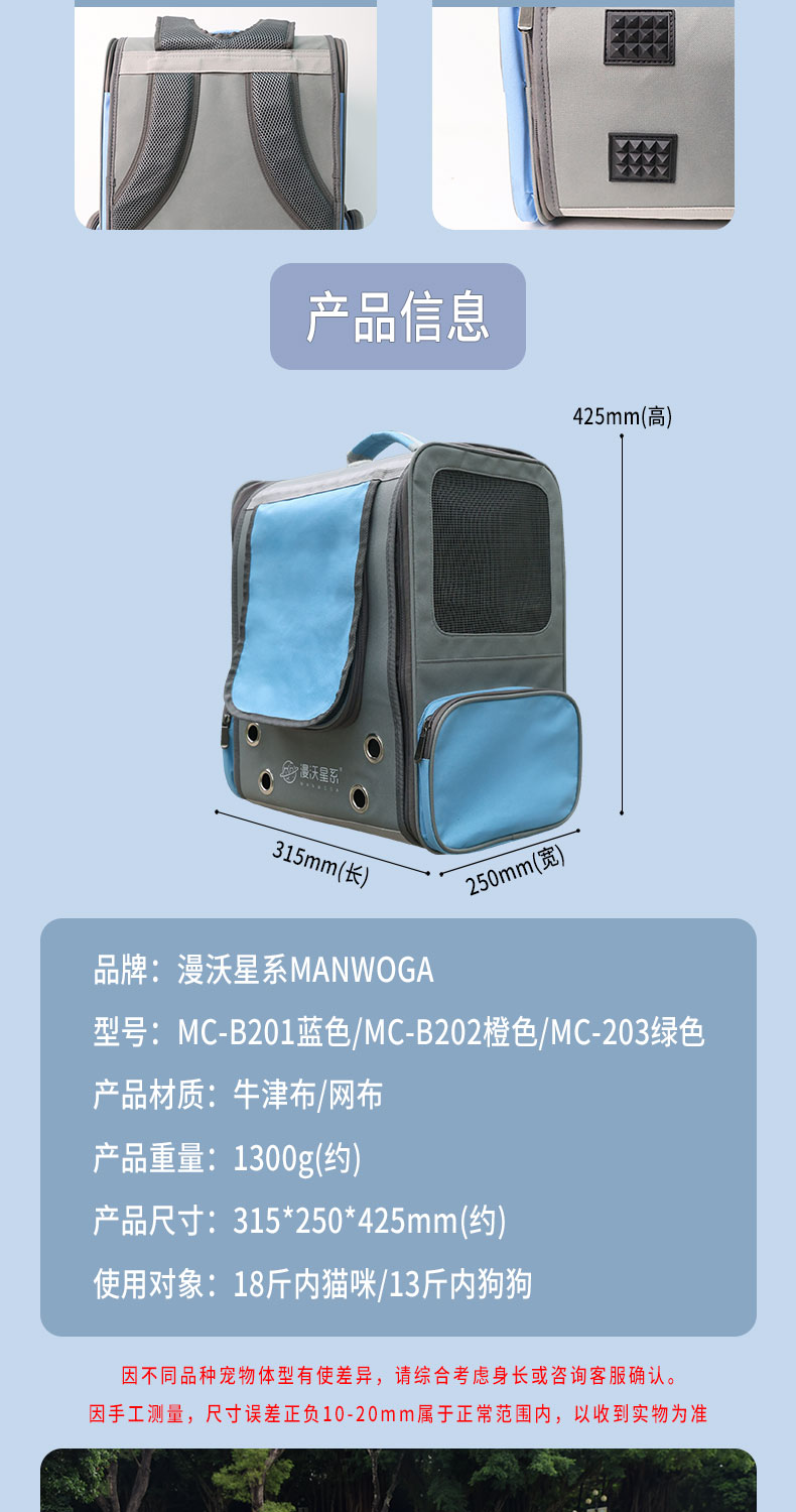 2. 双肩宠物背包 多孔透气/网格通风/拒绝闷热