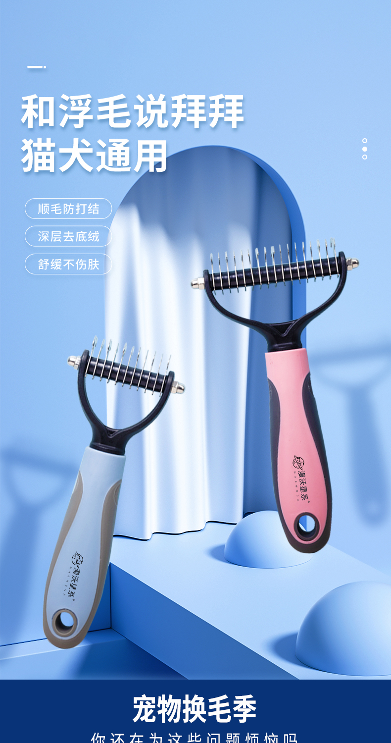 漫沃星系宠物双面开结梳MC-S303蓝色(小号)/MC-S304粉色(大号)