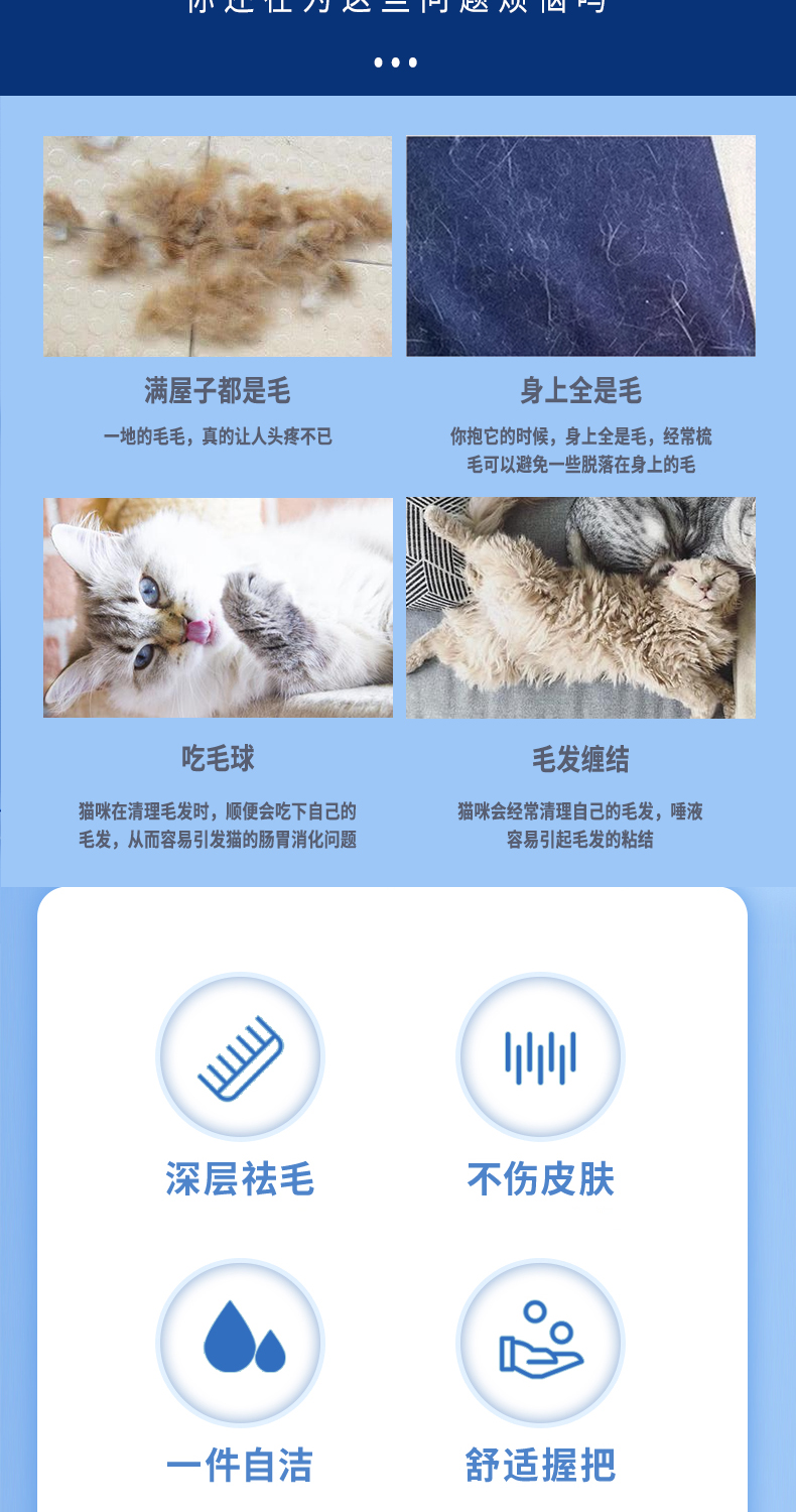 防滑舒适手柄,梳毛不伤肤,开结祛浮毛