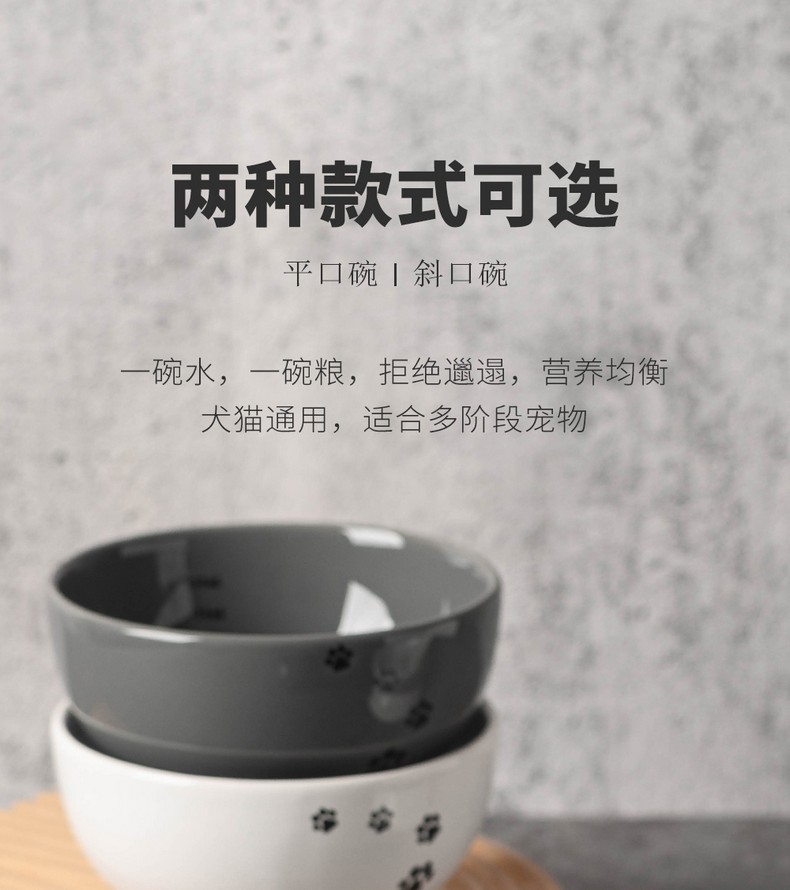 漫沃星系平口陶瓷猫碗MC-601白色/MC-602灰色 /斜口陶瓷猫碗MC-603白色/斜口MC-604灰色