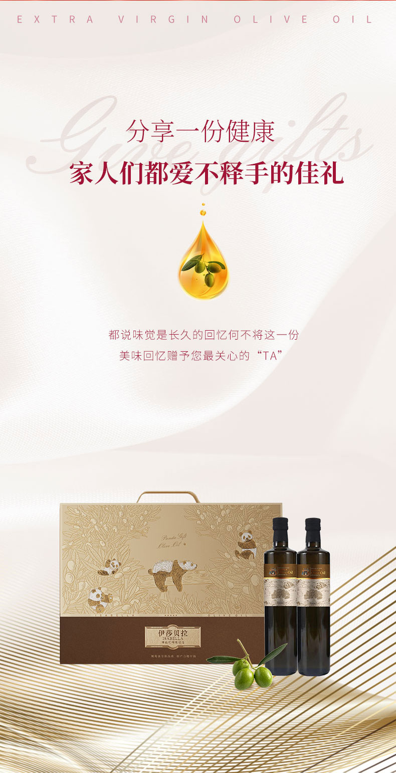 伊莎贝拉 财圆滚滚<-熊猫款> 特级初榨橄榄油500ml*2