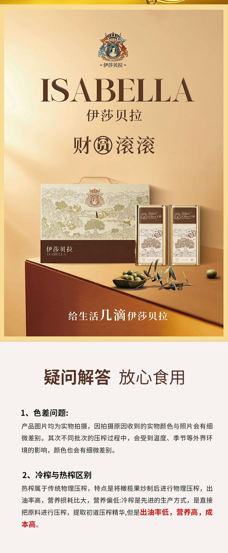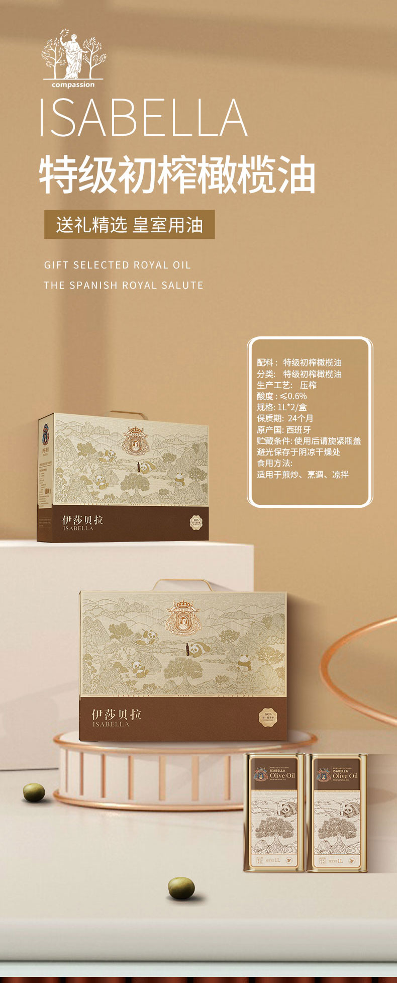 伊莎贝拉 财圆滚滚<-熊猫款> 特级初榨橄榄油1L*2