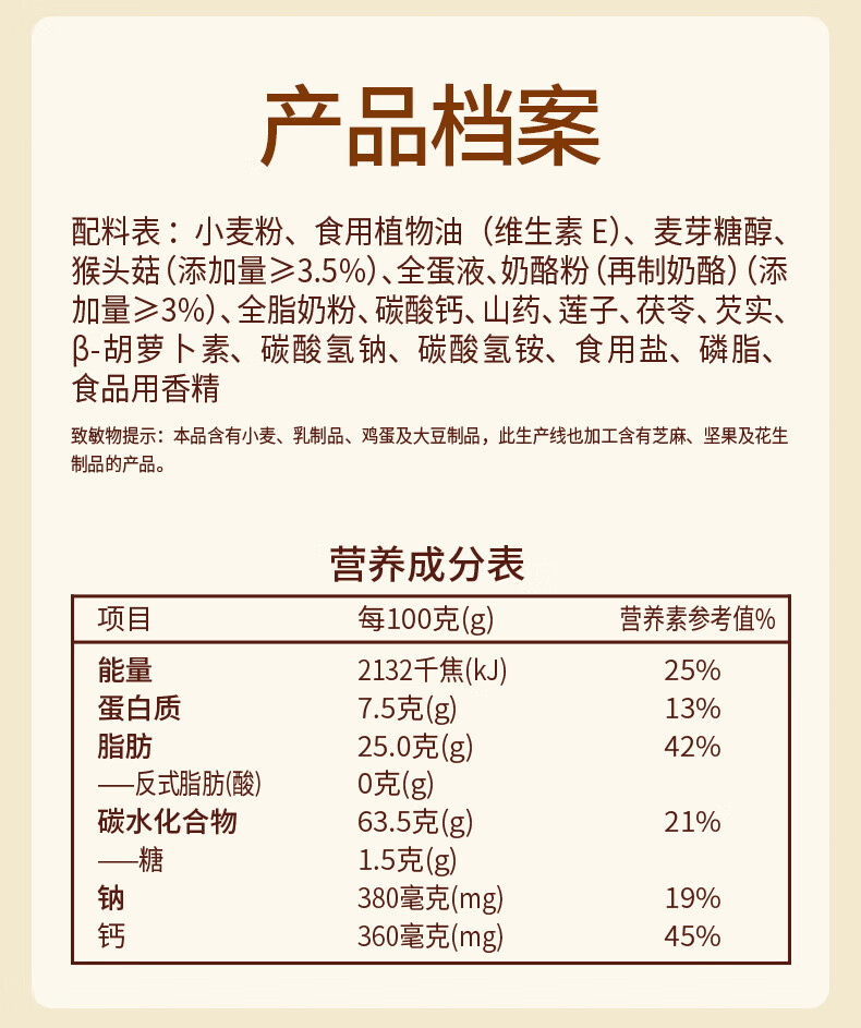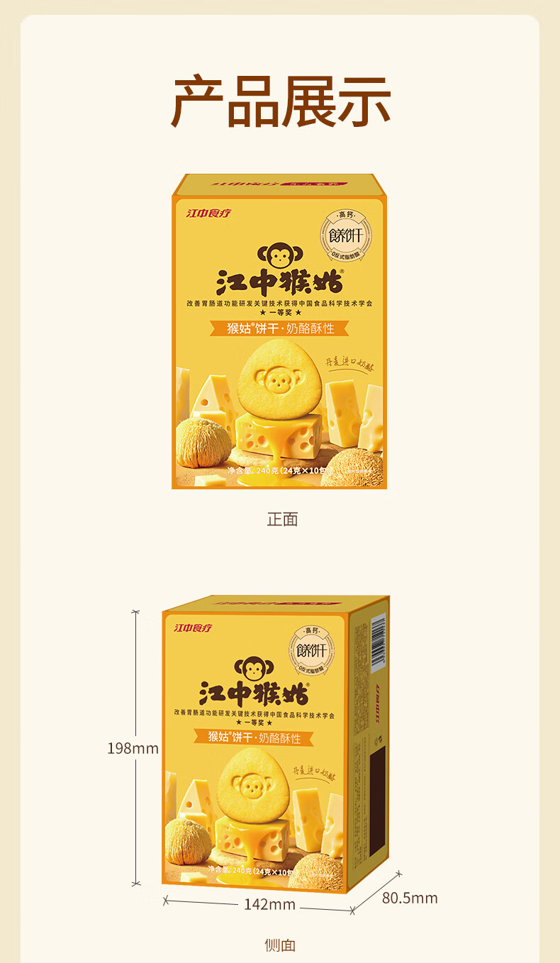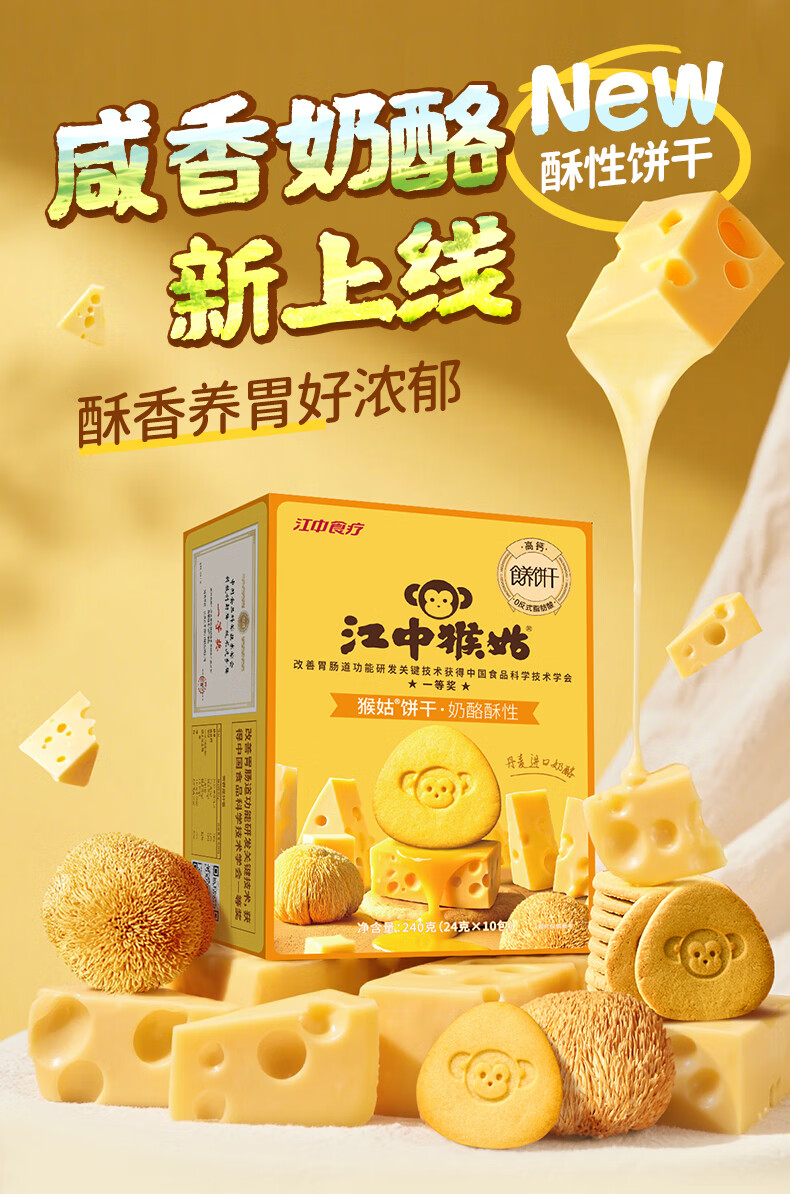 江中猴姑 猴姑饼干奶酪酥性240g(猴头菇3.5%)