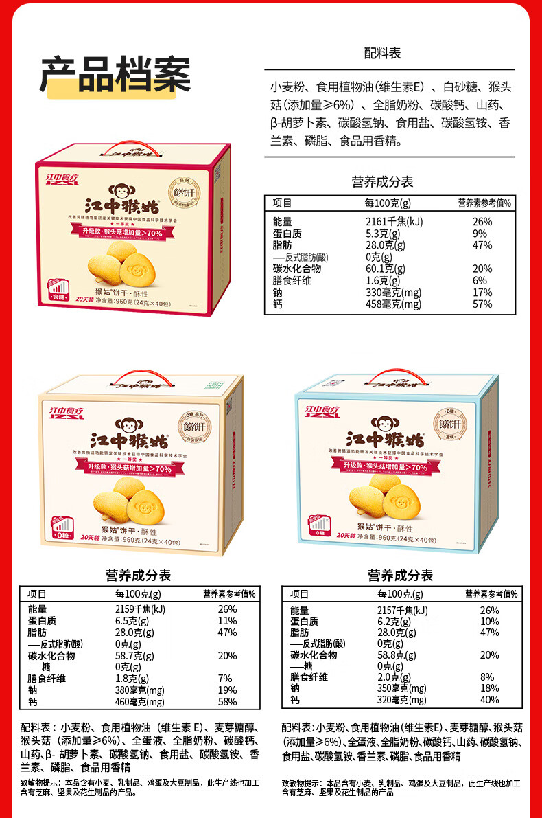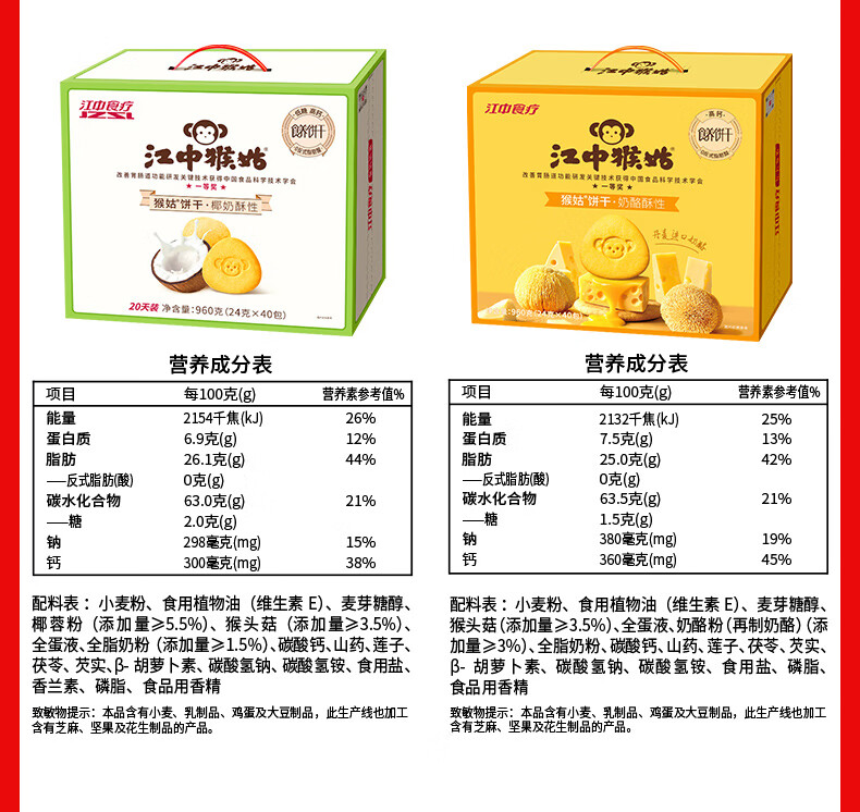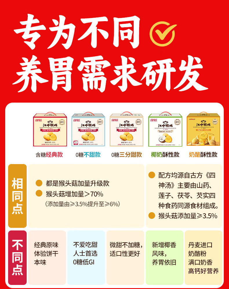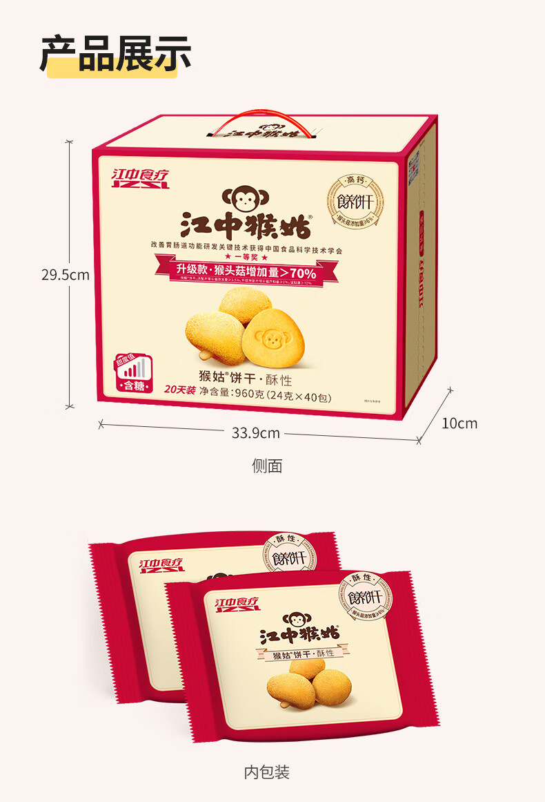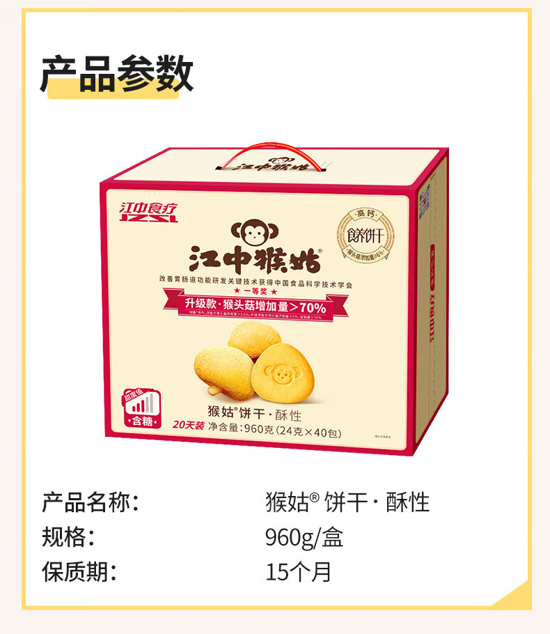 江中猴姑0糖酥性饼干20天(常规款)-(三角形、猴头菇6%)0糖酥性960g常规款