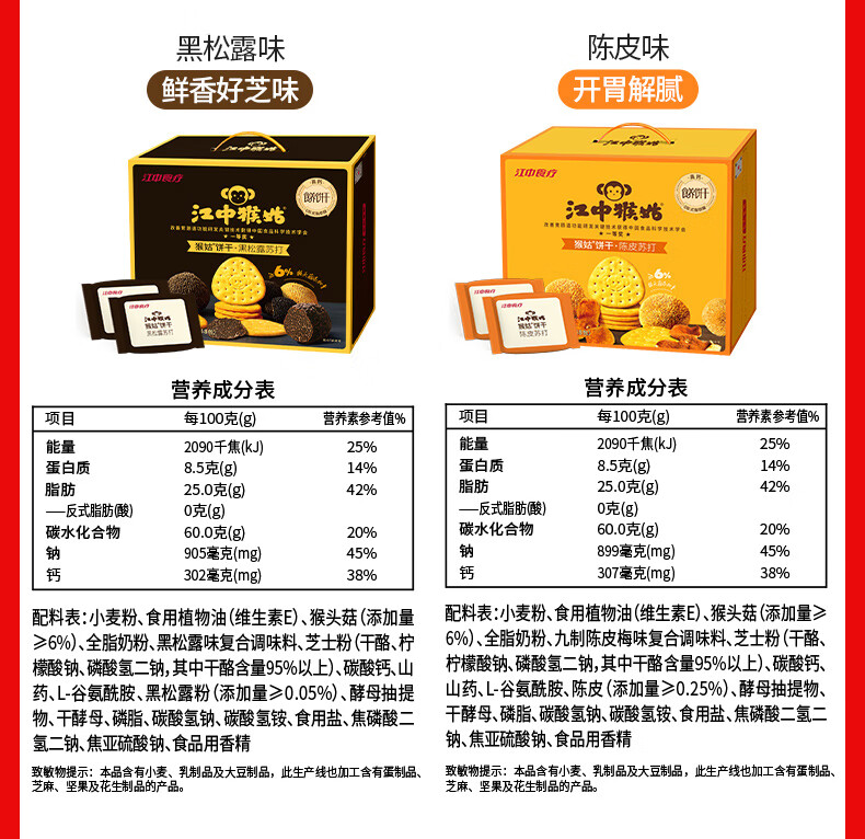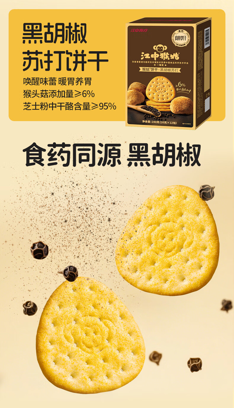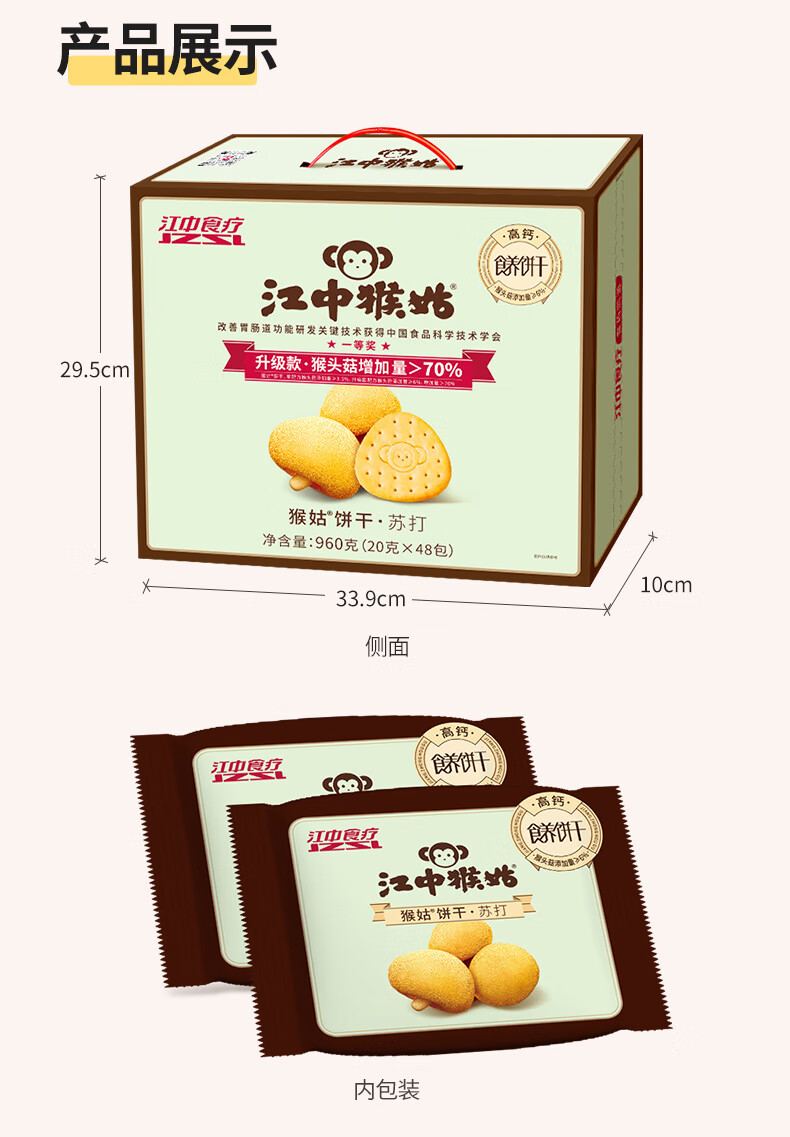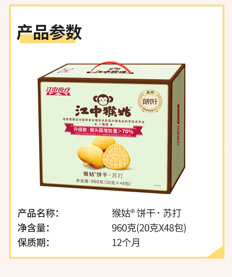 江中猴姑苏打饼干20天 -(三角形、猴头菇6%)原味苏打960g常规款