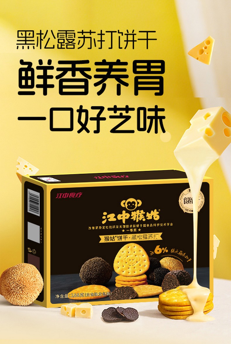 • 江中猴姑 黑松露苏打猴姑饼干288g/盒
