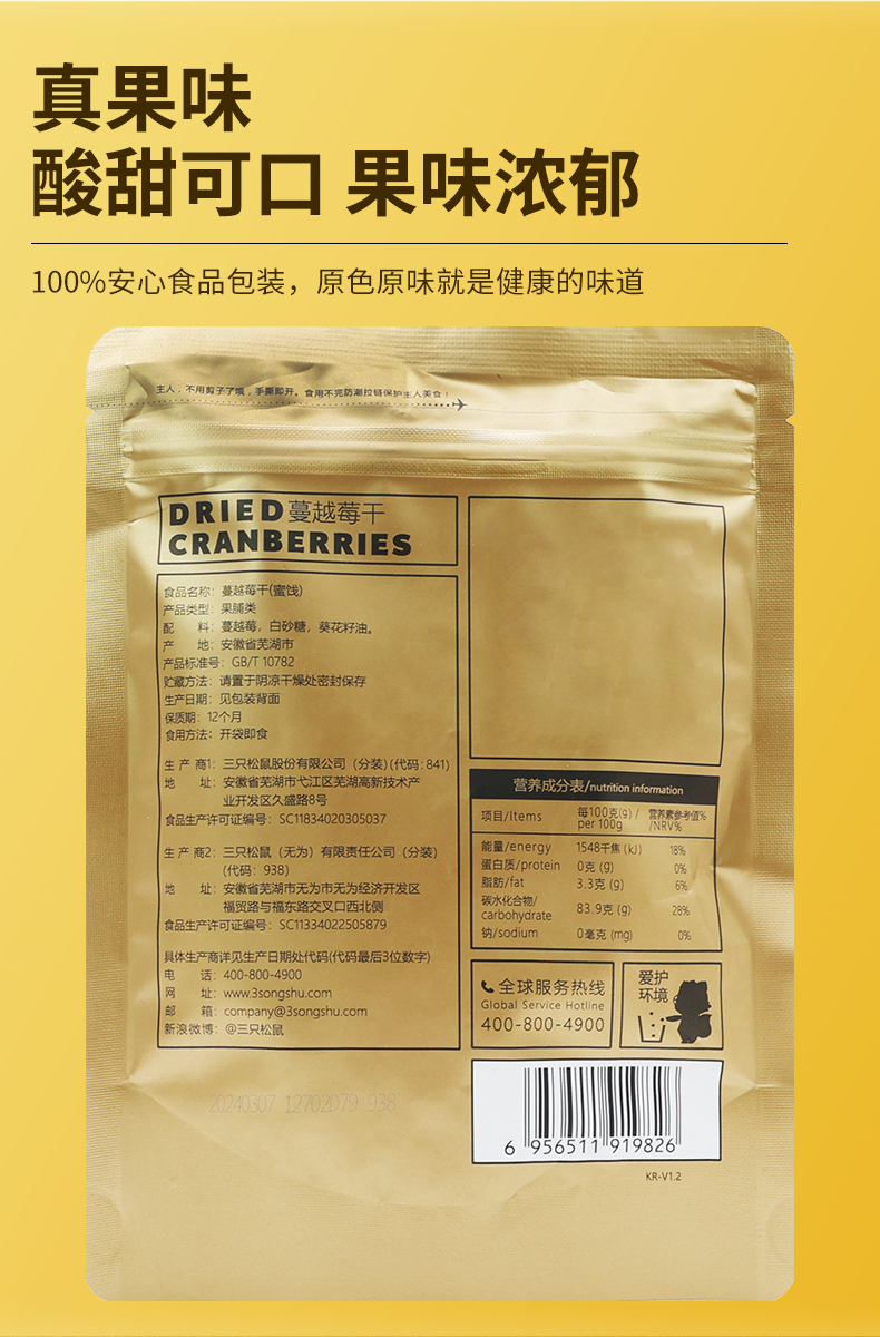 三只松鼠蔓越莓干100g