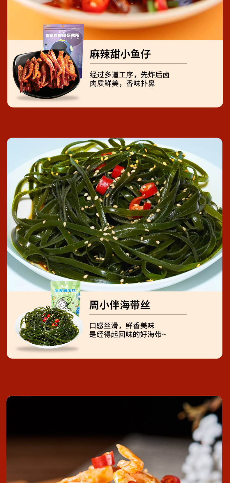 【周黑鸭&周小伴】麻辣甜小鱼仔 90g*1