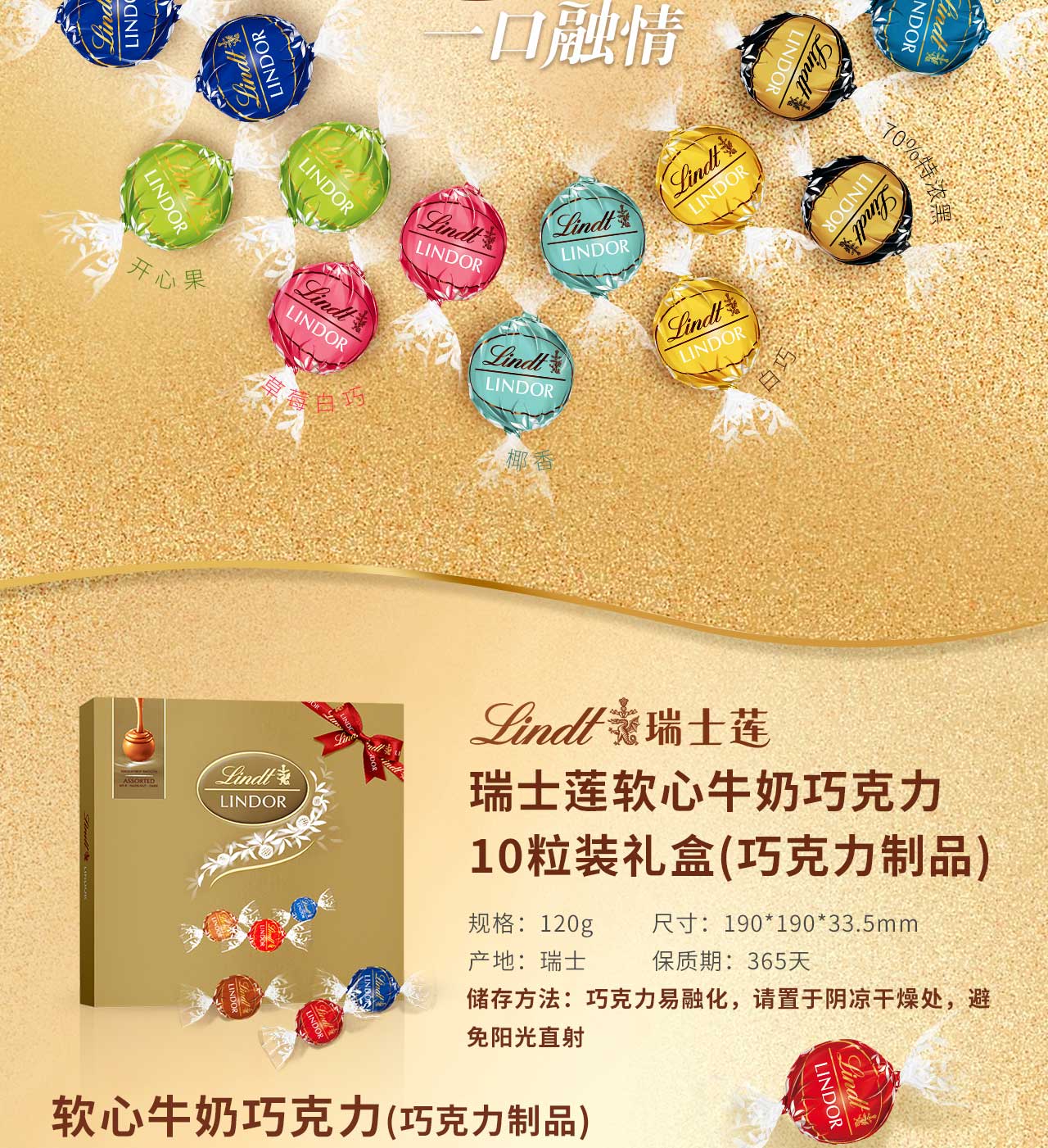 瑞士莲软心精选巧克力10粒盒装礼盒