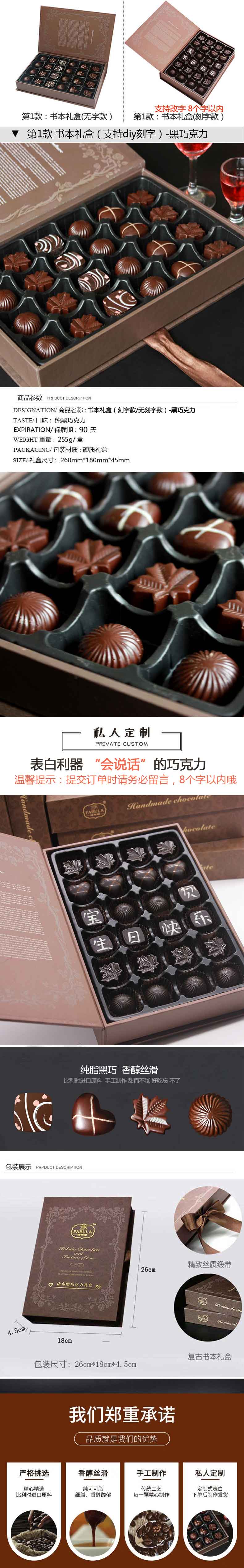 • 法布朗Fabula书本黑巧克力礼盒24颗255g(无刻字/定制刻字)