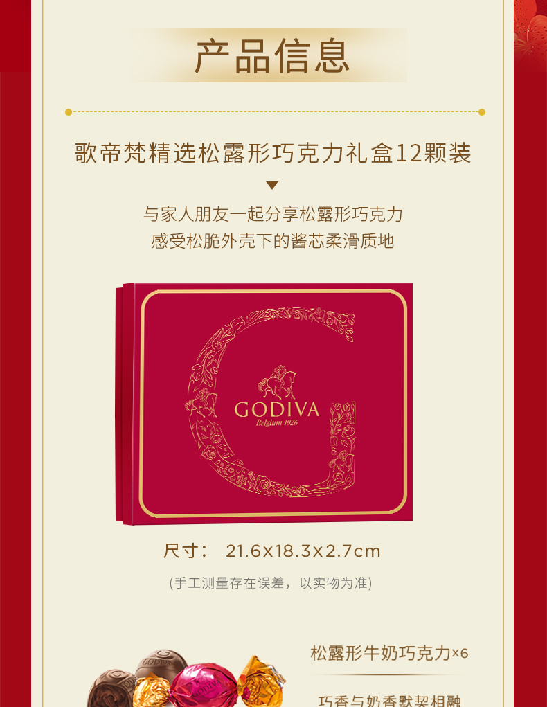 歌帝梵 精选松露形巧克力礼盒12颗装 120g