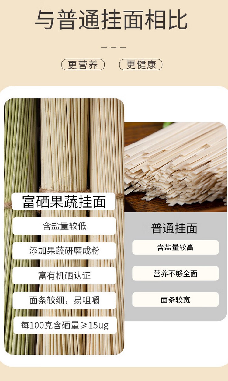 富硒胡萝卜挂面300g、富硒西红柿挂面300g、富硒菠菜挂面300g、富硒荞麦挂面300g、鸡翅木筷1双