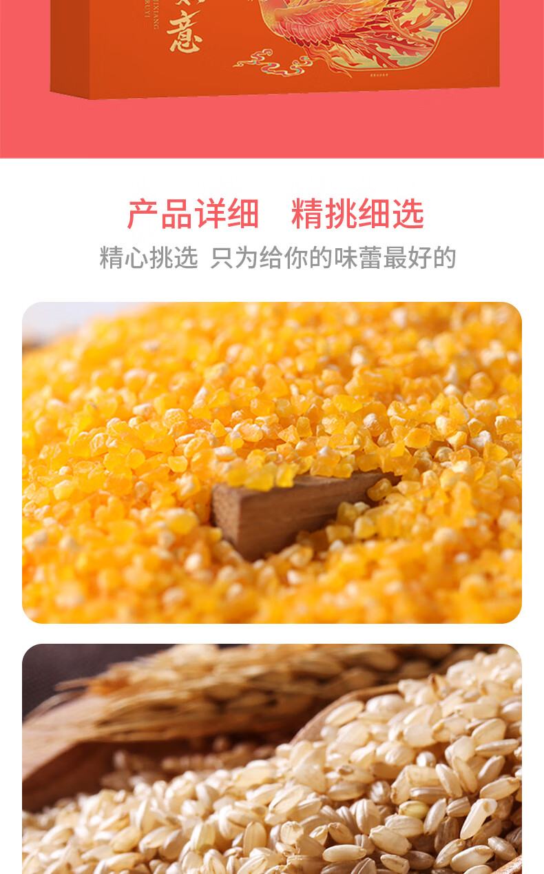 小麦仁350g、黑米350g、糙米350g、小玉米渣350g、绿豆百合粥150g、八宝粥150g、紫薯黑米粥150g、糙米莲子粥150g