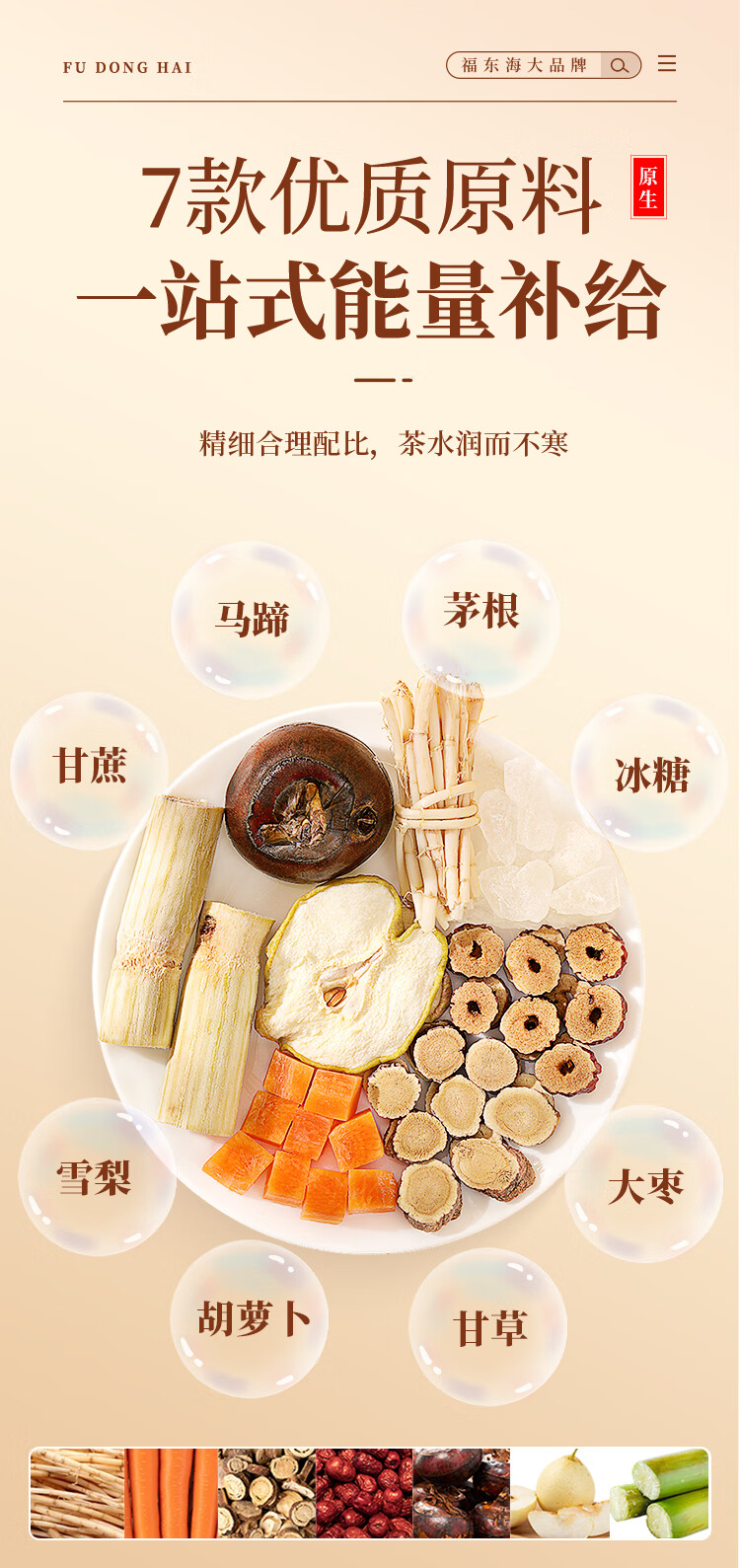 【福东海】竹蔗茅根雪梨茶120克(12克*10包)/盒 FDH02010190