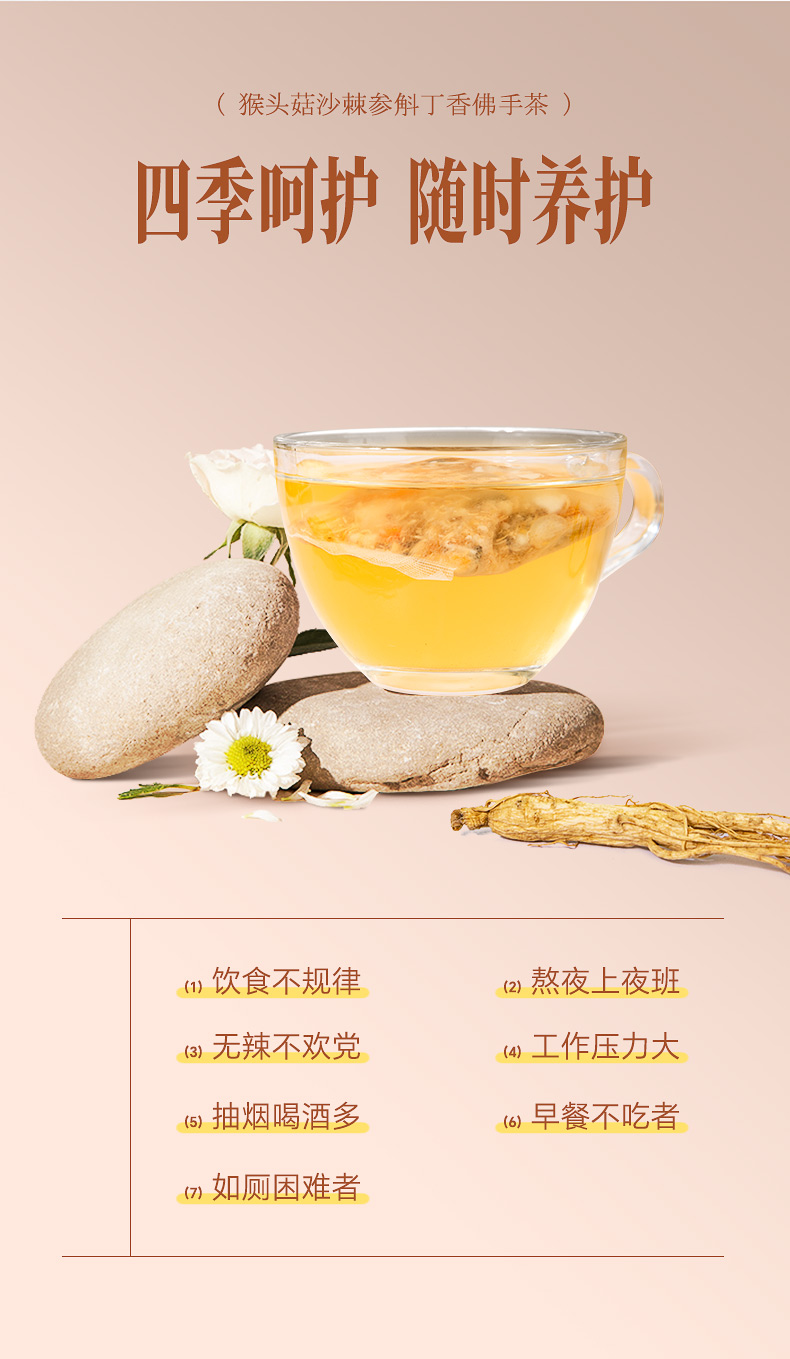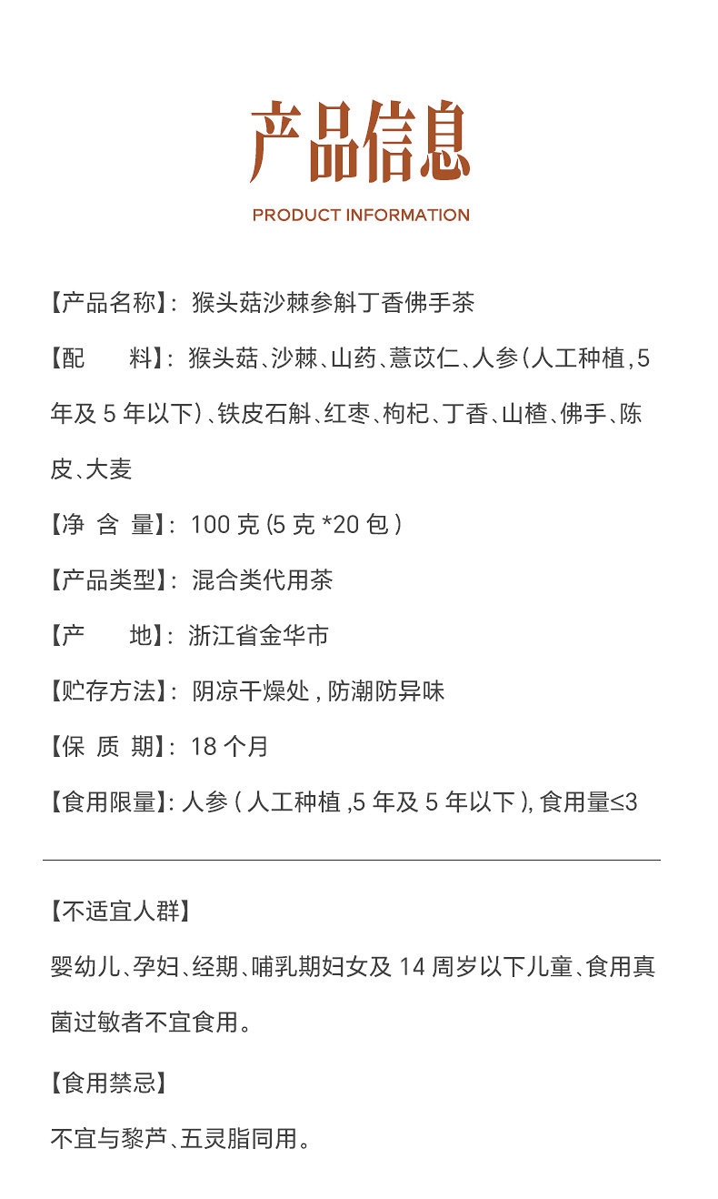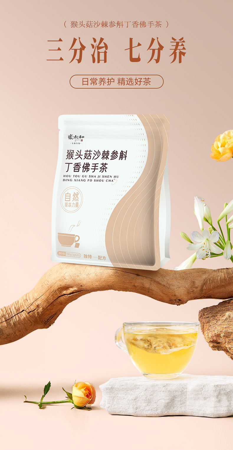 • 张太和 猴头菇沙棘参斛丁香佛手茶 100g(5g*20)/袋*2袋