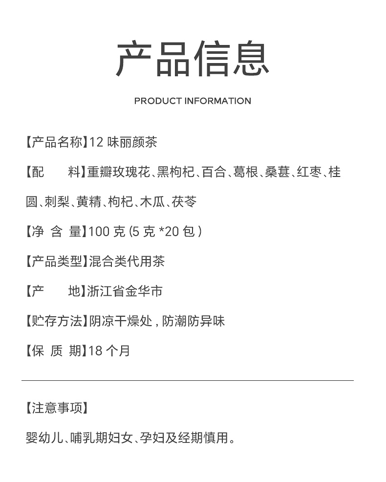 张太和 12味丽颜茶 100g(5g*20)/袋*2袋