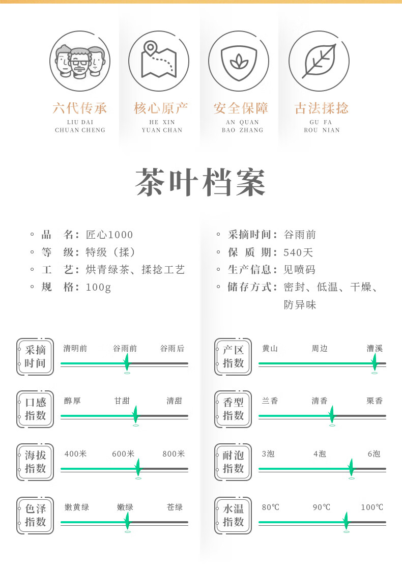 • 谢裕大 黄山毛峰匠心1000绿茶 100g/袋