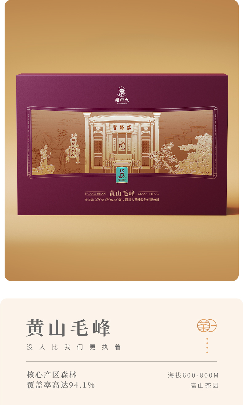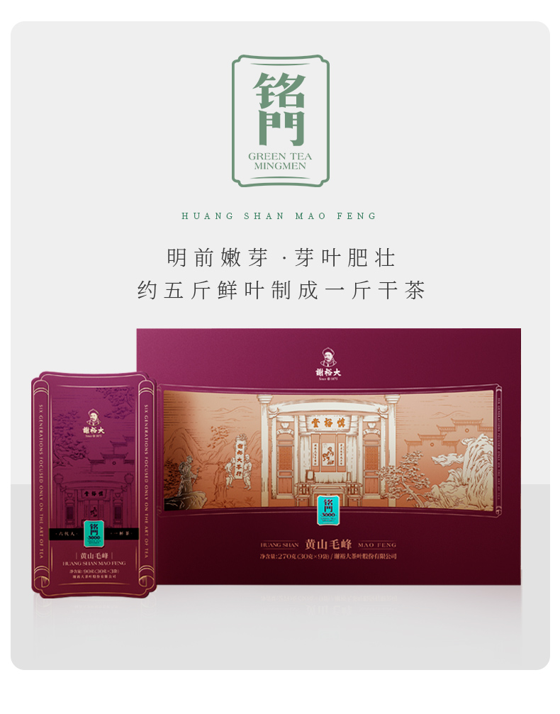 谢裕大 黄山毛峰铭门3000绿茶礼盒270g