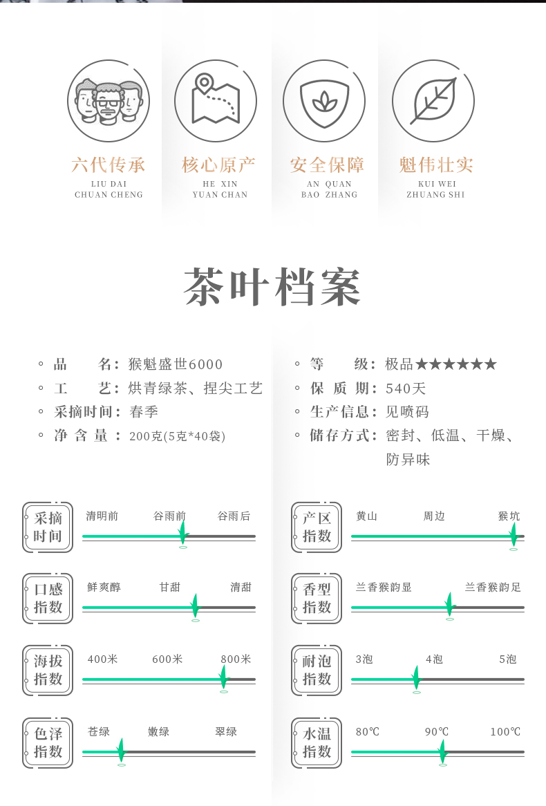 • 谢裕大 太平猴魁盛世6000绿茶礼盒200g/盒