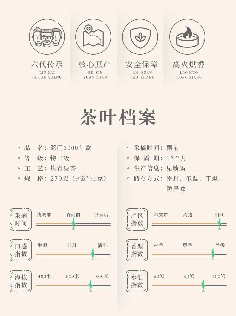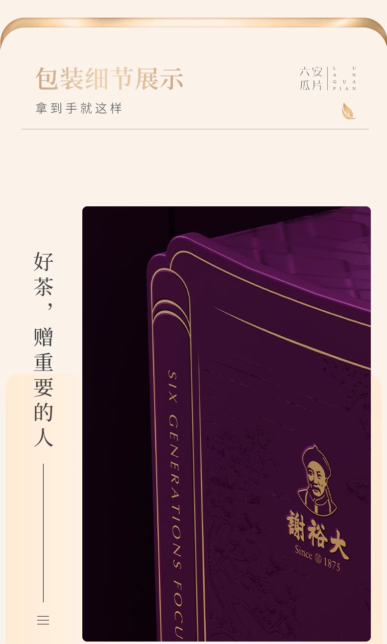 谢裕大 六安瓜片铭门3000绿茶礼盒270g/盒