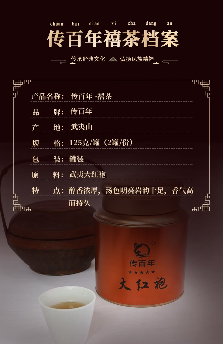 传百年 禧茶(武夷大红袍)250克/套(125克*2罐)
