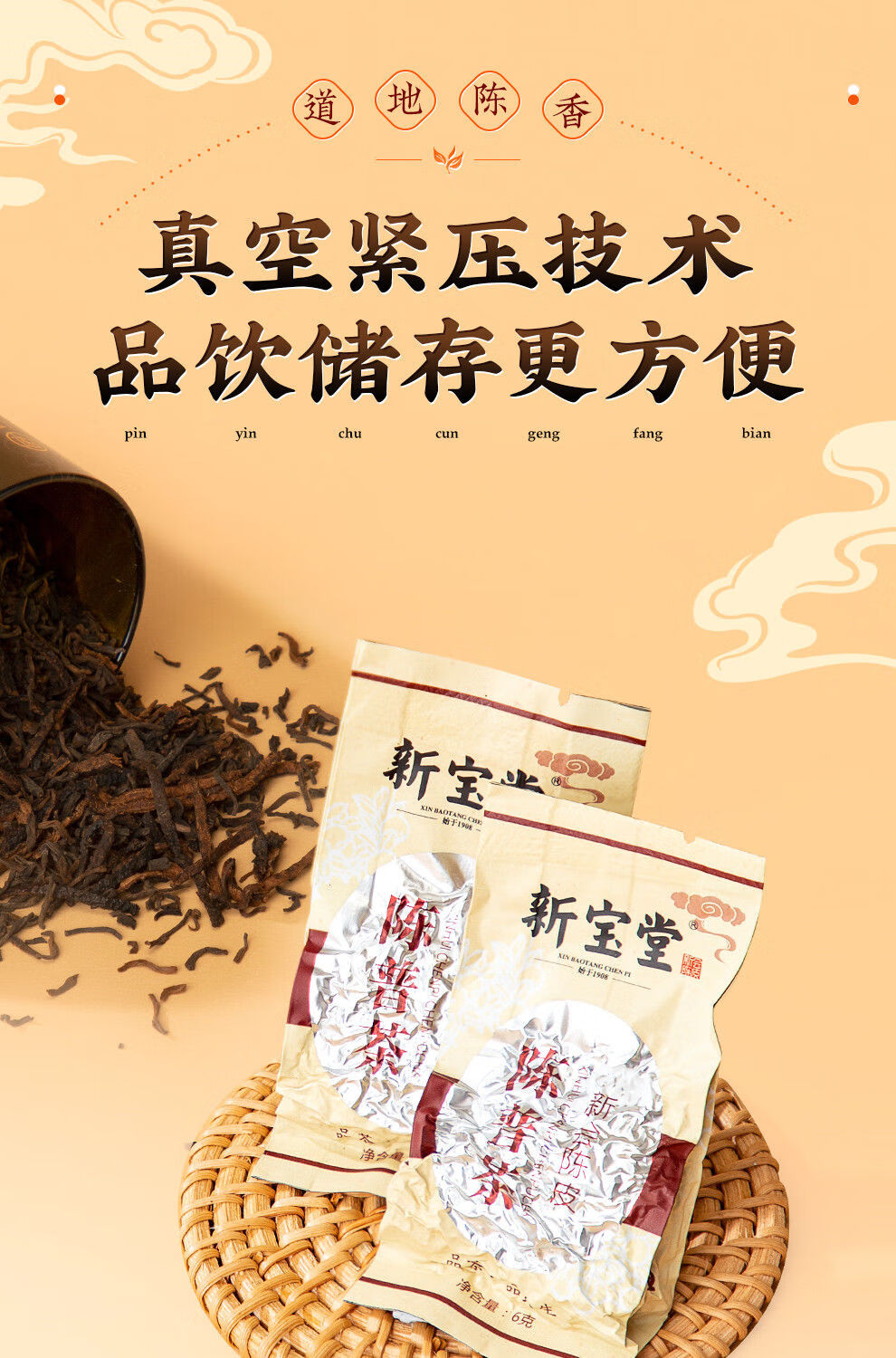 【新宝堂】 二十年陈皮 普洱茶铁罐礼盒90g