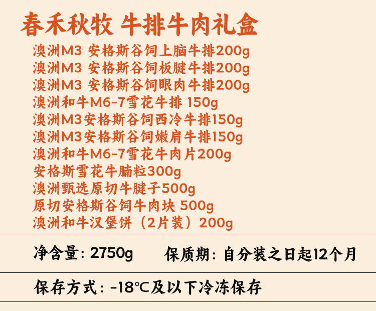 春禾秋牧可溯源高品质畅销牛肉礼包2750g