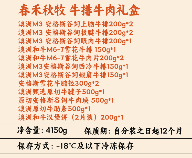 • 春禾秋牧 可溯源高品质畅销牛肉礼包4150g