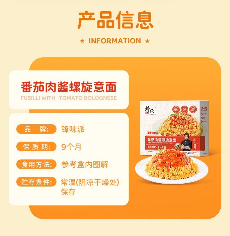 • 锋味派番茄肉酱螺旋意面208g