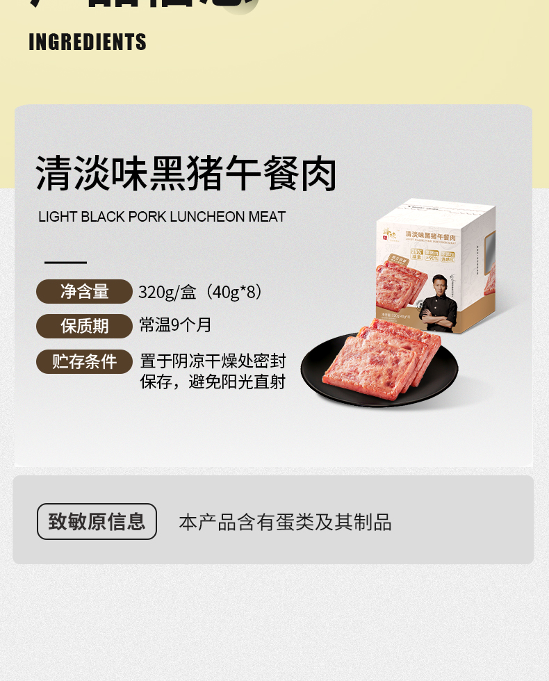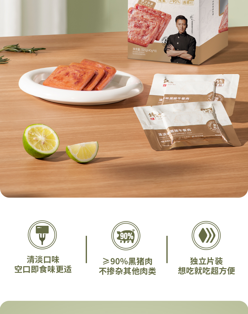 锋味派清淡味黑猪午餐肉320g