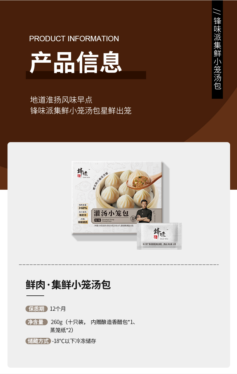 • 锋味派鲜肉集鲜小笼汤包260g