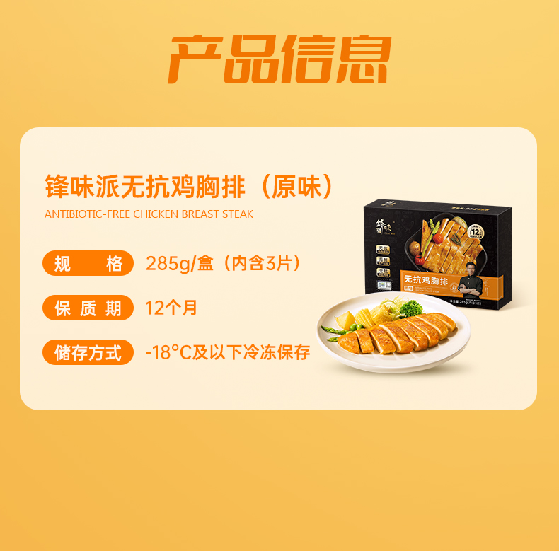 锋味派无抗鸡胸排(原味)285g