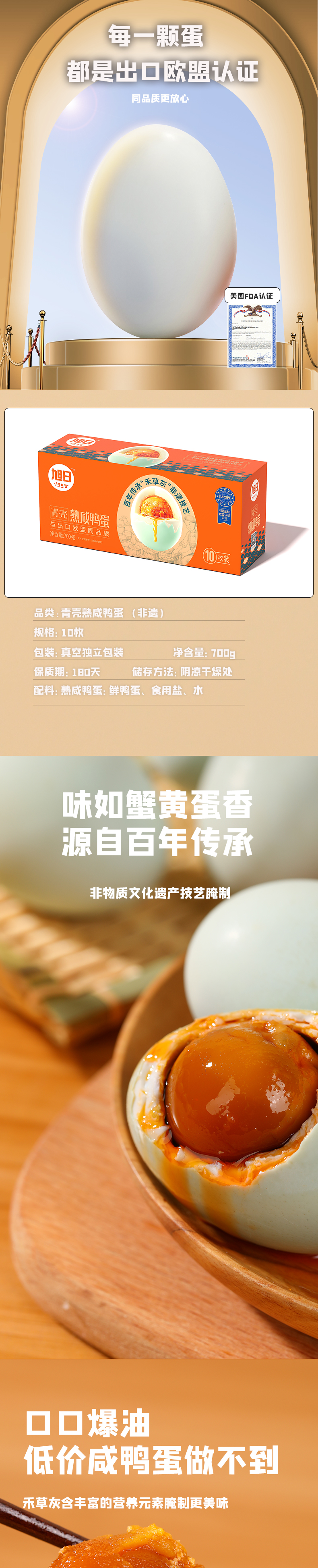 旭日1996熟咸鸭蛋(青壳非遗)700g/盒(70g*10枚)