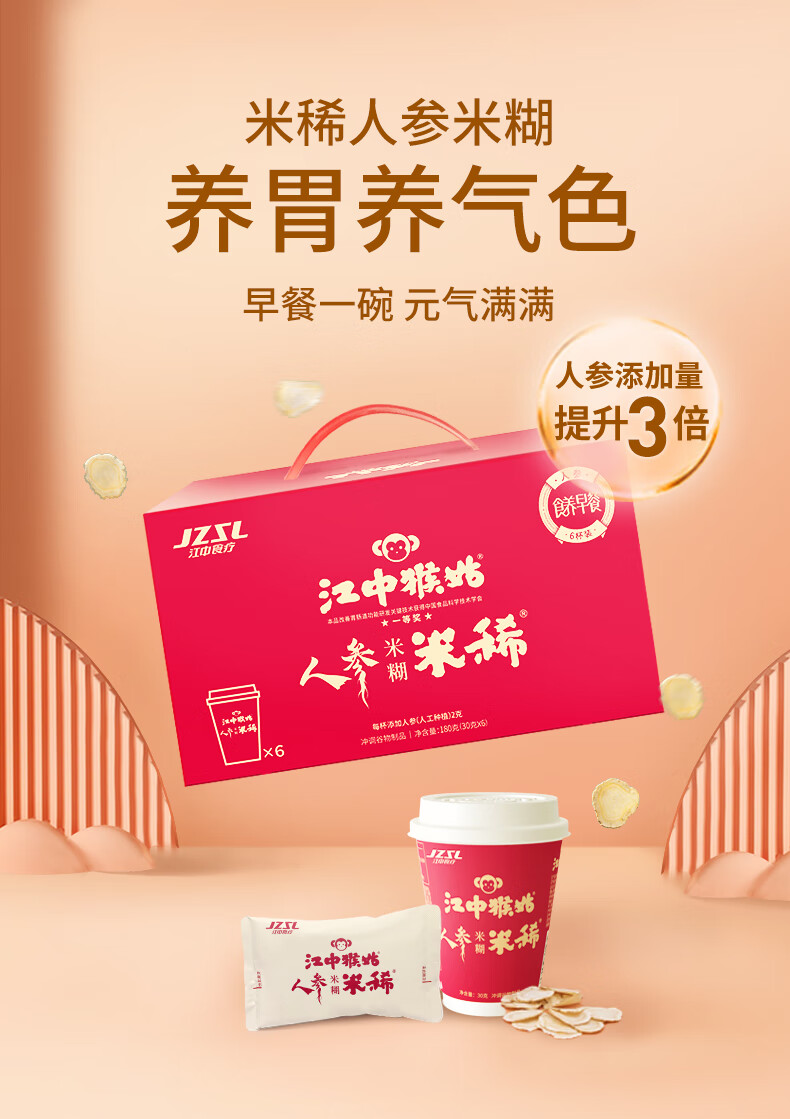 江中猴姑人参米糊米稀(180g)6杯装 30g6杯装
