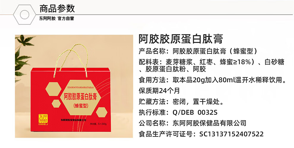 东阿阿胶 阿胶胶原蛋白肽膏(蜂蜜型)220g*5瓶