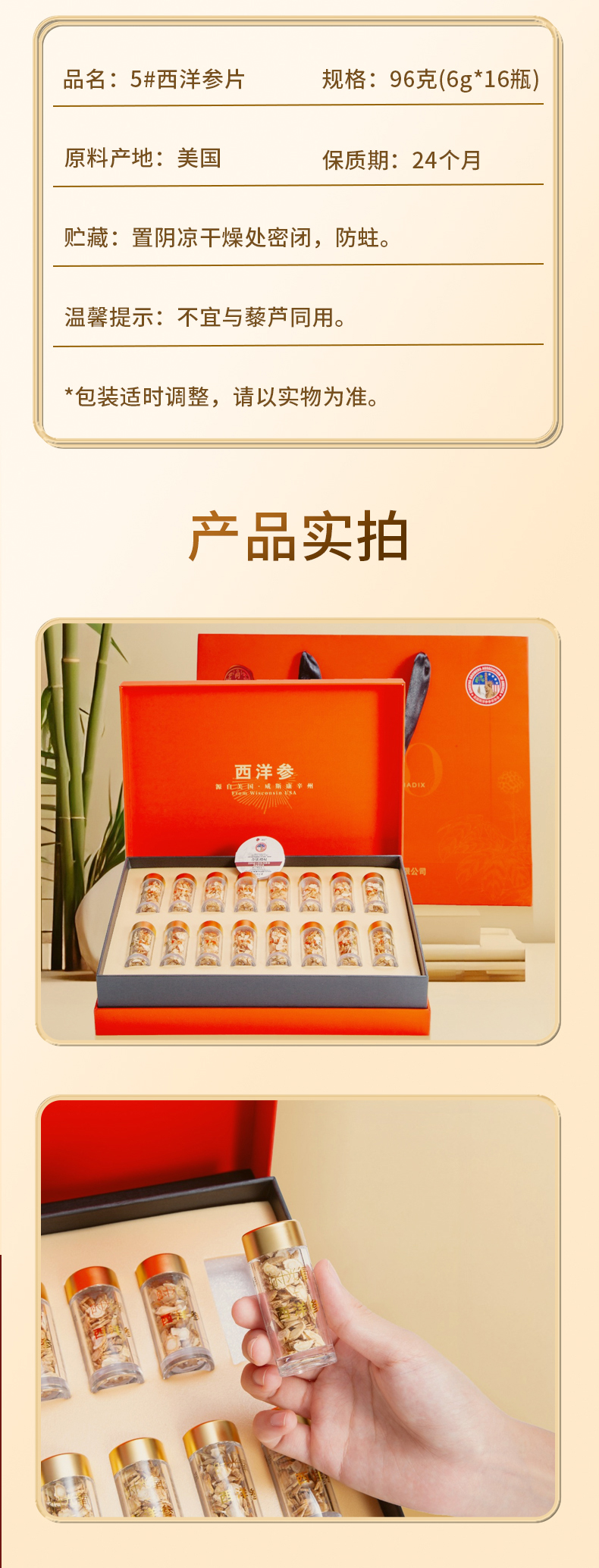 北京同仁堂时光氧美国西洋参参片96克(6克*16瓶)