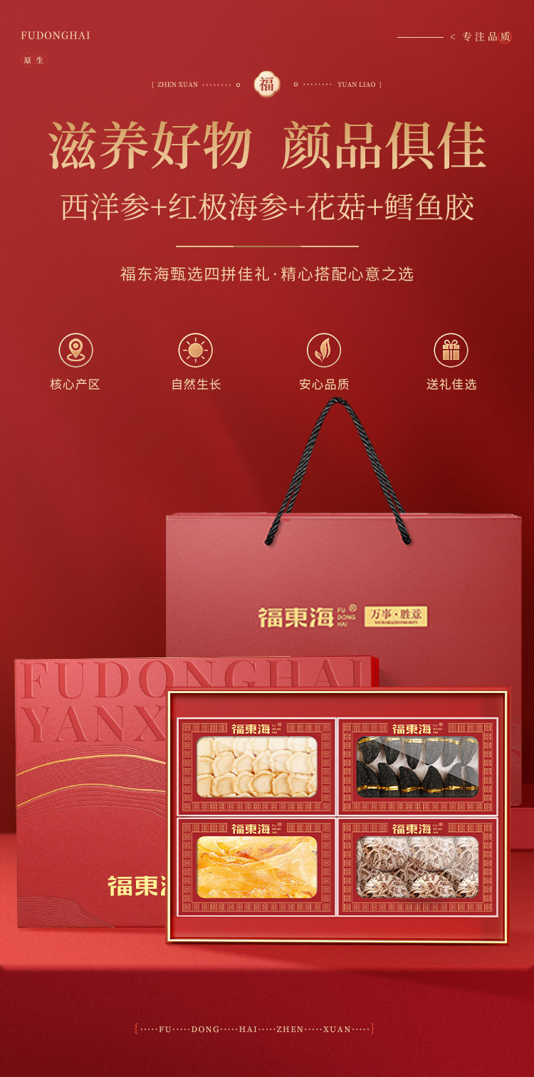 福东海【万事胜意】四宝(西洋参+红极海参+花菇+鳕鱼胶)-D