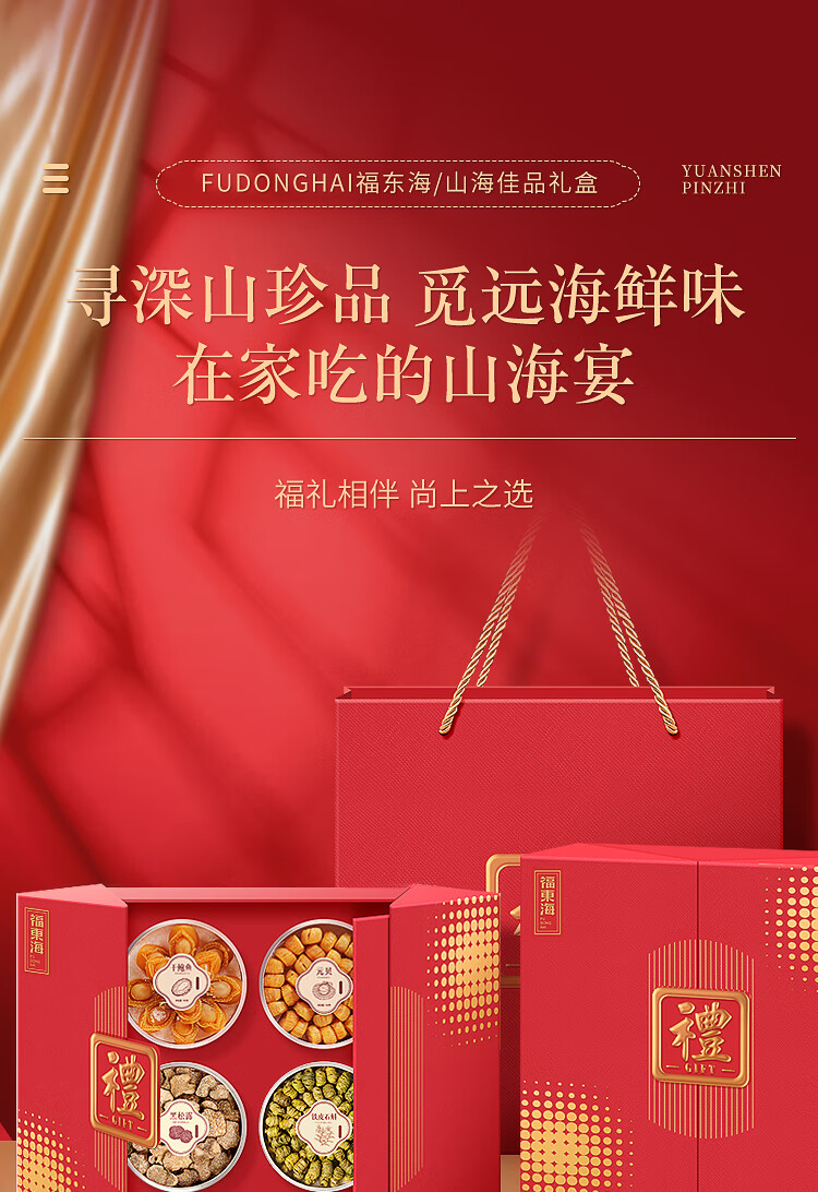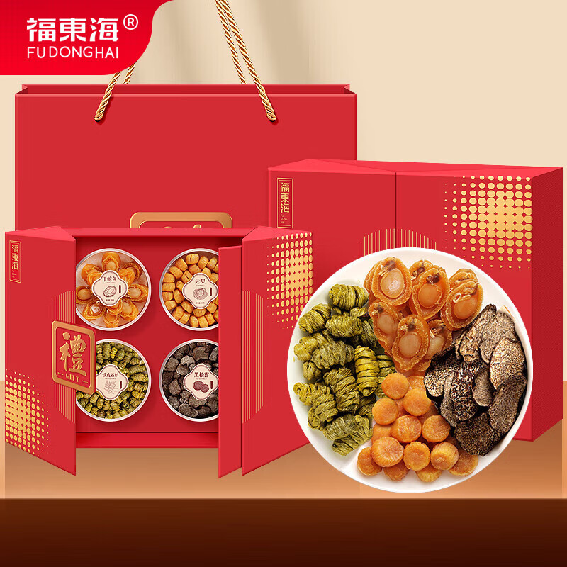福东海【鸿福】黑松露鲍鱼元贝铁皮石斛四拼礼盒