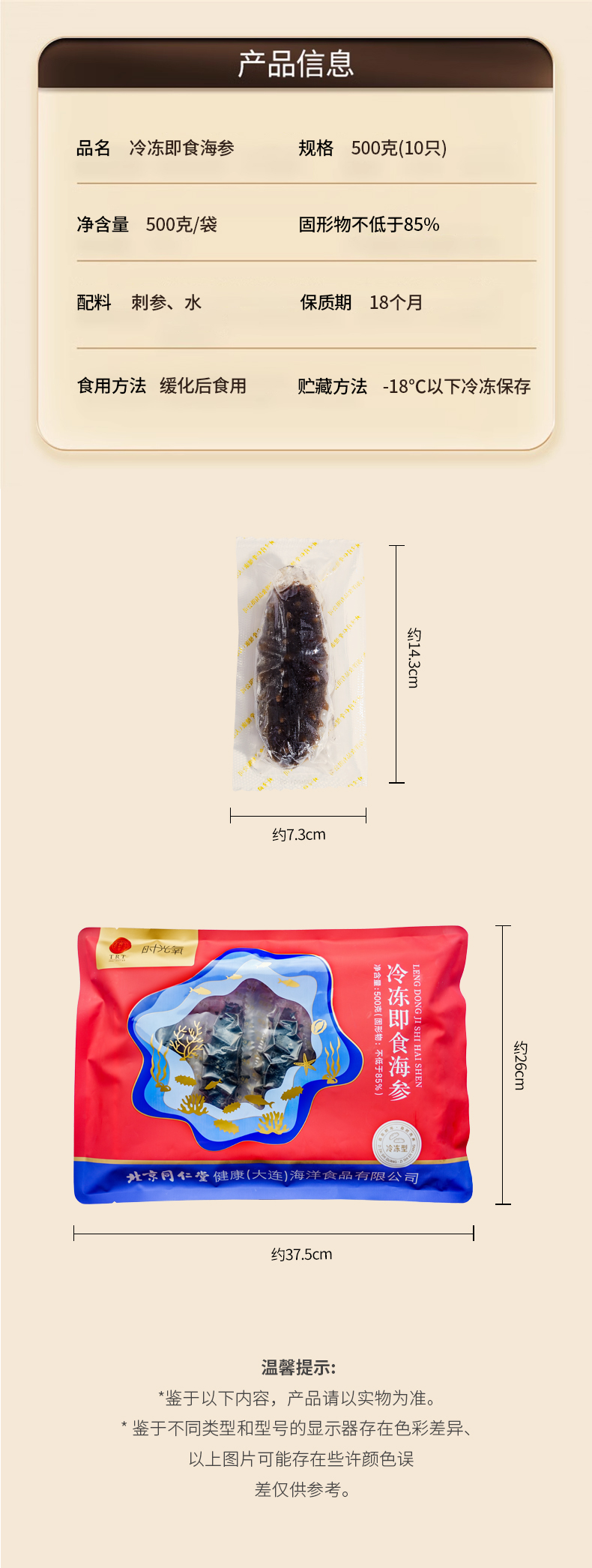 • 北京同仁堂时光氧新品 即食海参500克/包