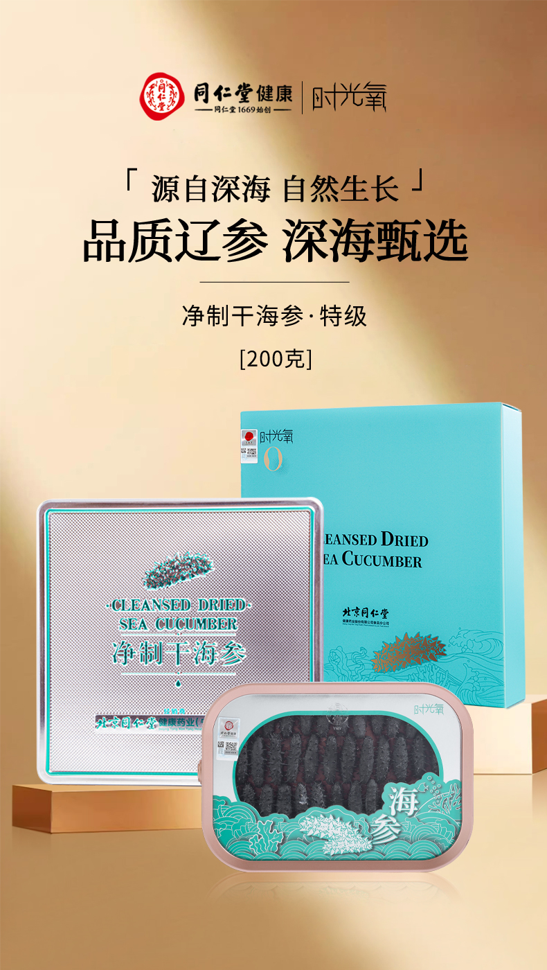 北京同仁堂时光氧净制干海参特级200克 (80-120头)