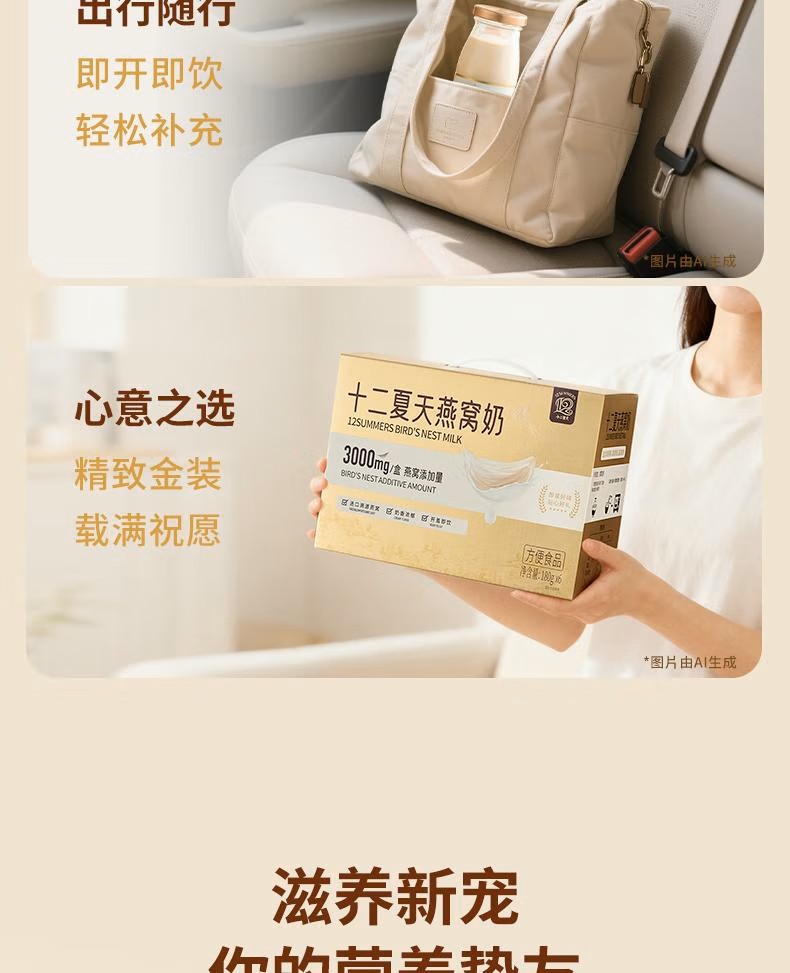 选用印尼进口的燕窝和优选牧场奶源,传递源头的新鲜滋味。每瓶投料500mg干燕窝,燕丝晶莹分明,细润爽滑,生产过程中不添加任何化学添加剂和人工色素,仅以冰糖调味,每一滴都凝聚着大自然的精华,为你带来最纯粹、天然的滋养体验。