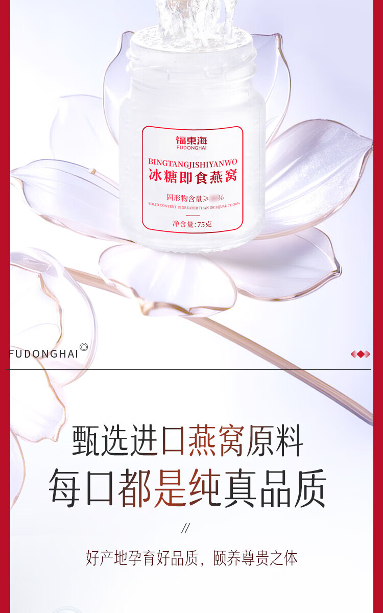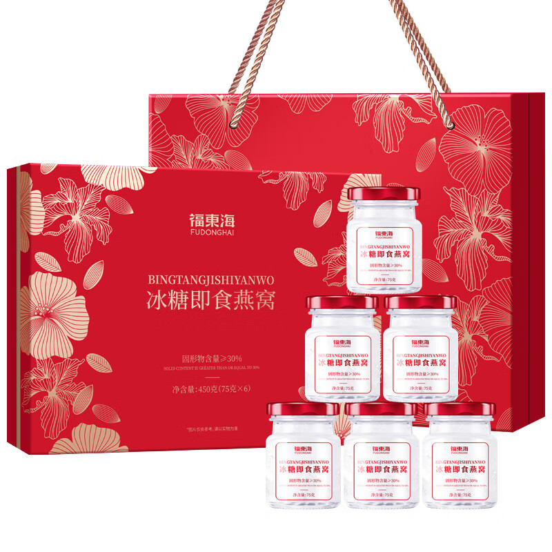 【福东海-特渠】冰糖即食燕窝450克(75克x6瓶)--固形物30%