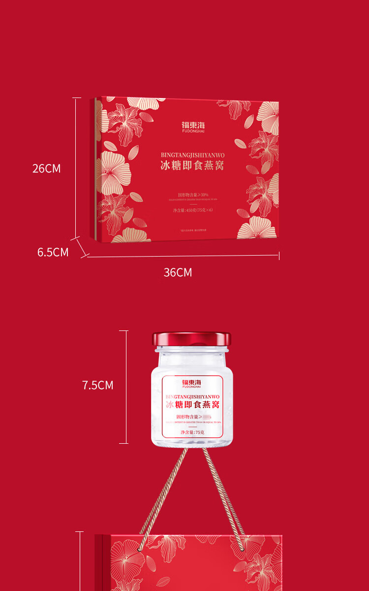冰糖即食燕窝450克(75克x6瓶) /盒+礼袋--固形物30%