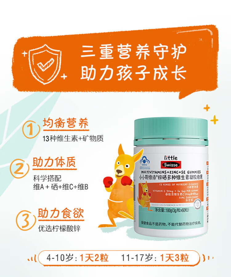 Swisse小小斯维诗锌硒多种维生素凝胶糖果60粒装
