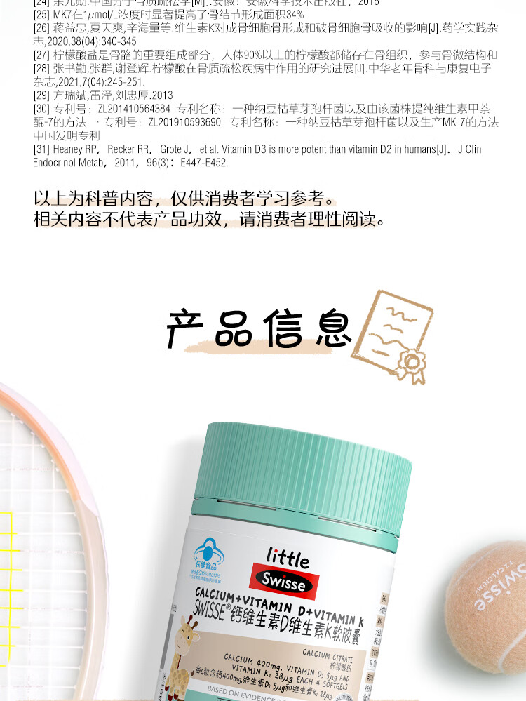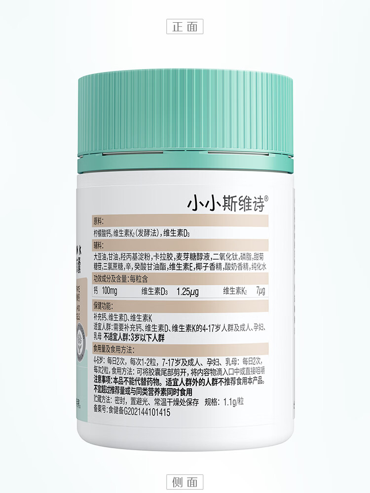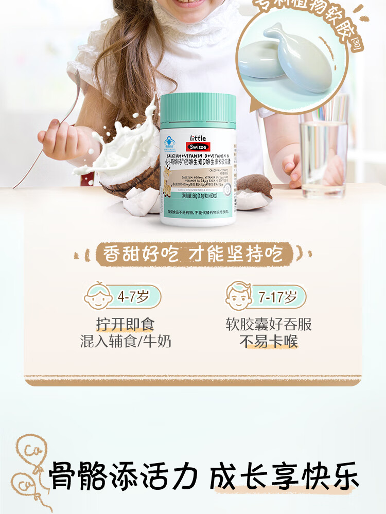 Swisse小小斯维诗钙维生素D维生素K软胶囊 60粒装