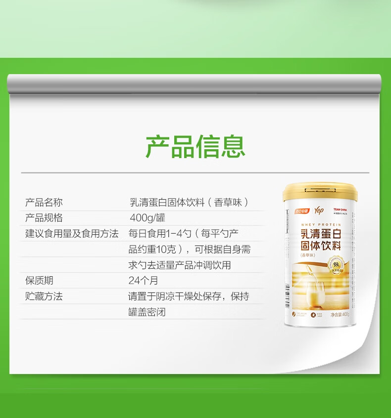 汤臣倍健乳清蛋白固体饮料(香草味)(400g/高盖)