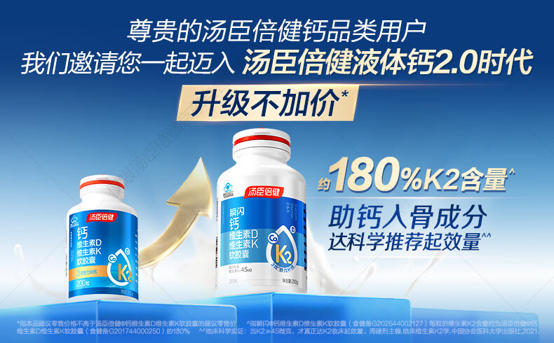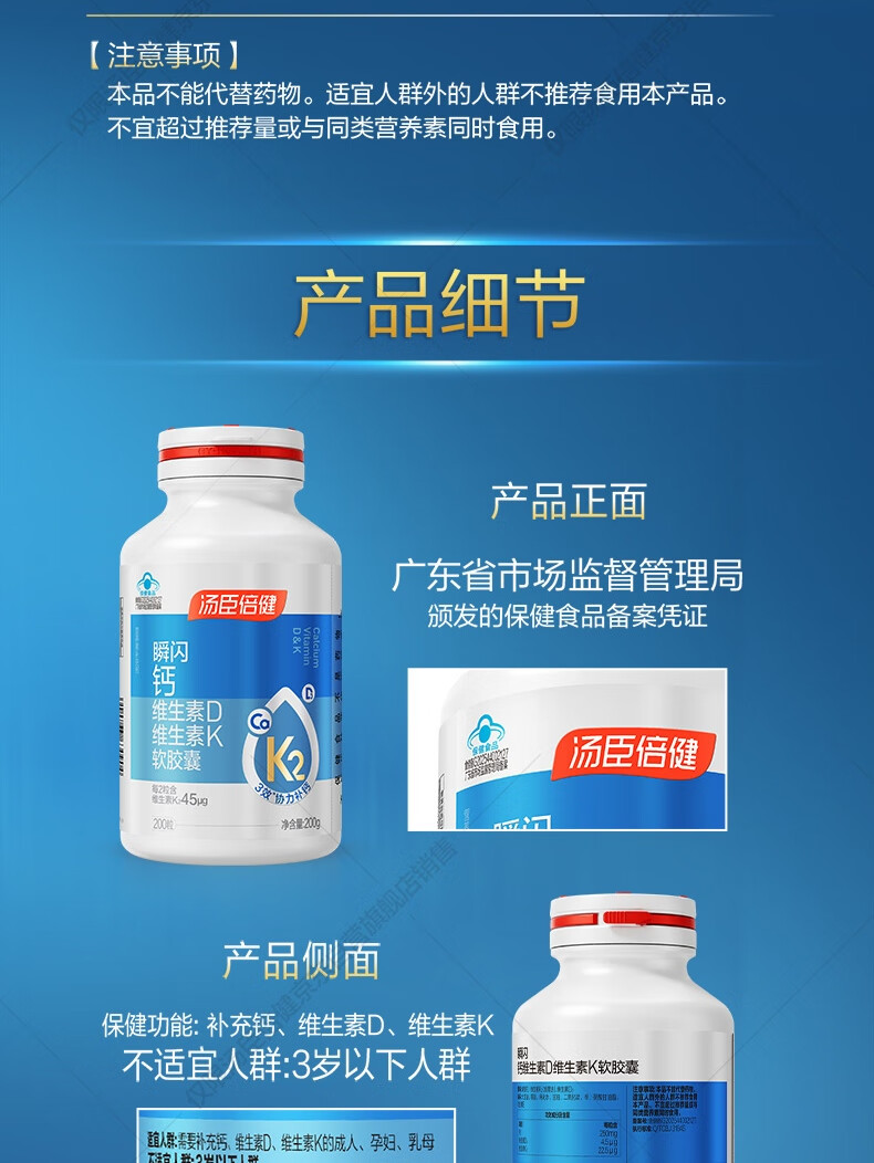 汤臣倍健钙维生素D维生素K软胶囊(200粒)彩盒装